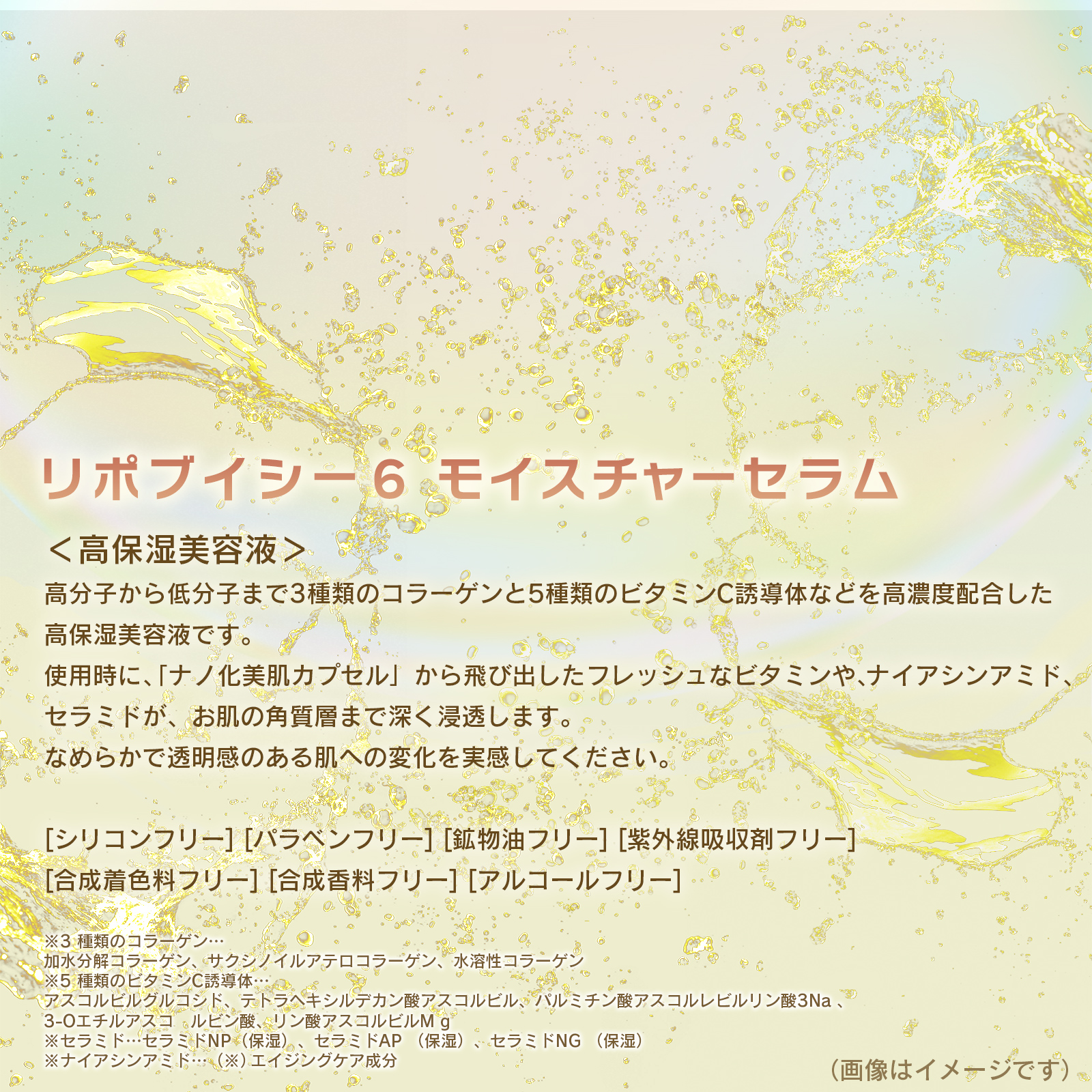 ※5 加水分解コラーゲン、サクシノイルアテロコラーゲン、水溶性コラーゲン(全て保湿成分)